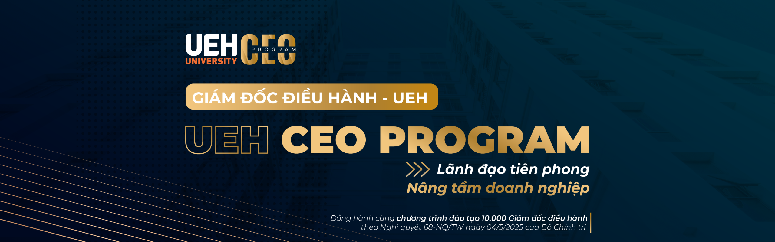 Trong kỷ nguyên hội nhập và số hóa, Việt Nam đang cần đào tạo 10.000 Giám đốc điều hành trước 2030 theo lời kêu gọi của Bộ Chính trị về Phát triển kinh tế tư nhân thông qua Nghị quyết số 68-NQ/TW ngày 04/05/2025, nhấn mạnh yêu cầu phát triển đội ngũ doanh nhân có bản lĩnh và năng lực dẫn dắt doanh nghiệp phát triển bền vững trong thời kỳ chuyển đổi số.